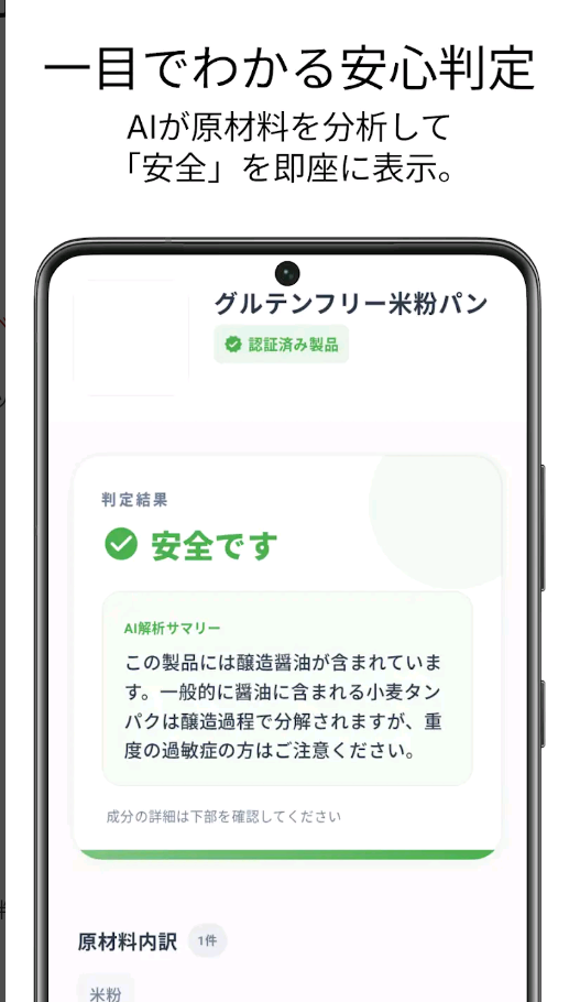 スーパーの棚の前で、ユーザーが最も知りたいのは「詳細な理由」の前に、まず**「食べていいのかどうか」**です。